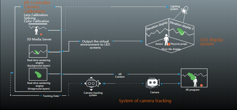 Many advantages can be brought by XR LED screens such as realistic scenes that support real-time ambient light simulation, fast scene switching, scene presenting in advance, production and time saving, virtual scenic features, instant composite output video, etc.
