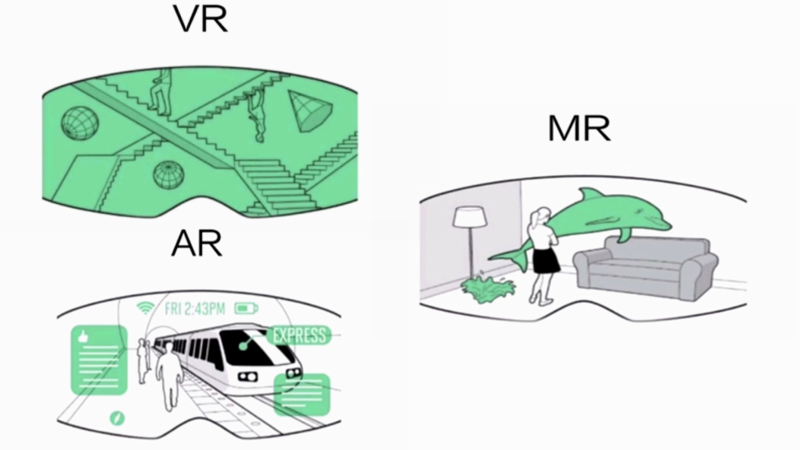 Third, MR. MR will mix reality with the virtual world. People can interact with the virtual elements in the real world.